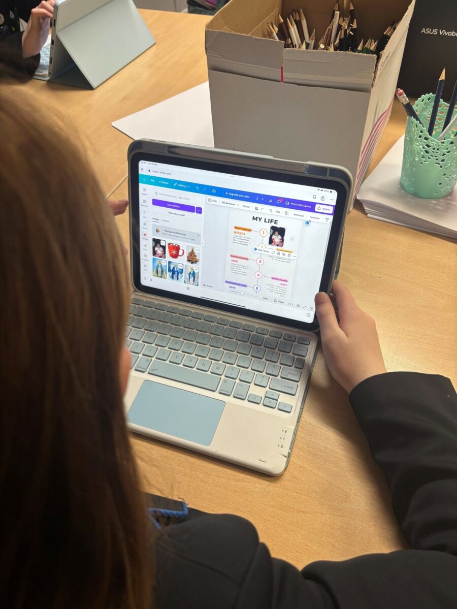 ✅ Graphic Design Software – In English class, Year 9 were challenged with using either Canva or Adobe Express to design a poster for their own version of 'A Christmas Carol', the book they have been studying this term. They studied pictorial stimuli in preparation for their own character image. In RE lessons, Year 8 used Canva to reflect on key moments in their lives to date, using various templates and styles and include photos to enhance their projects.