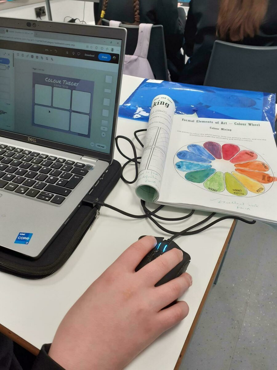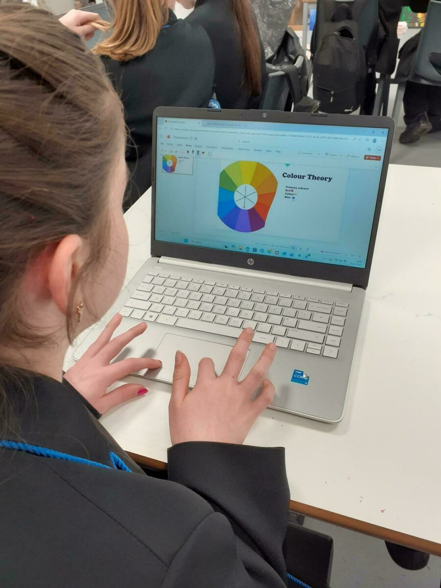 ✅ PowerPoint Presentations – Creativity shone through as students designed engaging slides to share their findings in Art, where Year 8 created presentations about Colour Theory. In French class, Year 9 used PowerPoint and Adobe Express to present their research on Christmas Traditions in France.